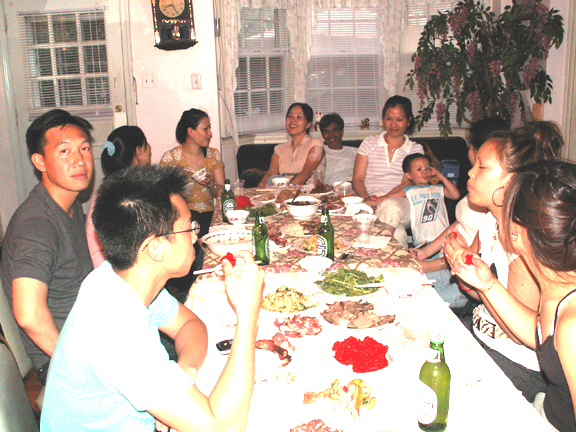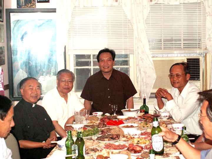 Buổi tiệc chào mừng bắt đầu vào lúc 6 giờ chiều kéo dài đến gần 12 giờ khuya. Trong bữa tiệc gồm có 3 cha và khoảng trên dưới 6o bà con lớn bé cùng đến tay bắt mặt mừng, chia sẻ tâm tình với cha thật vui vẻ.